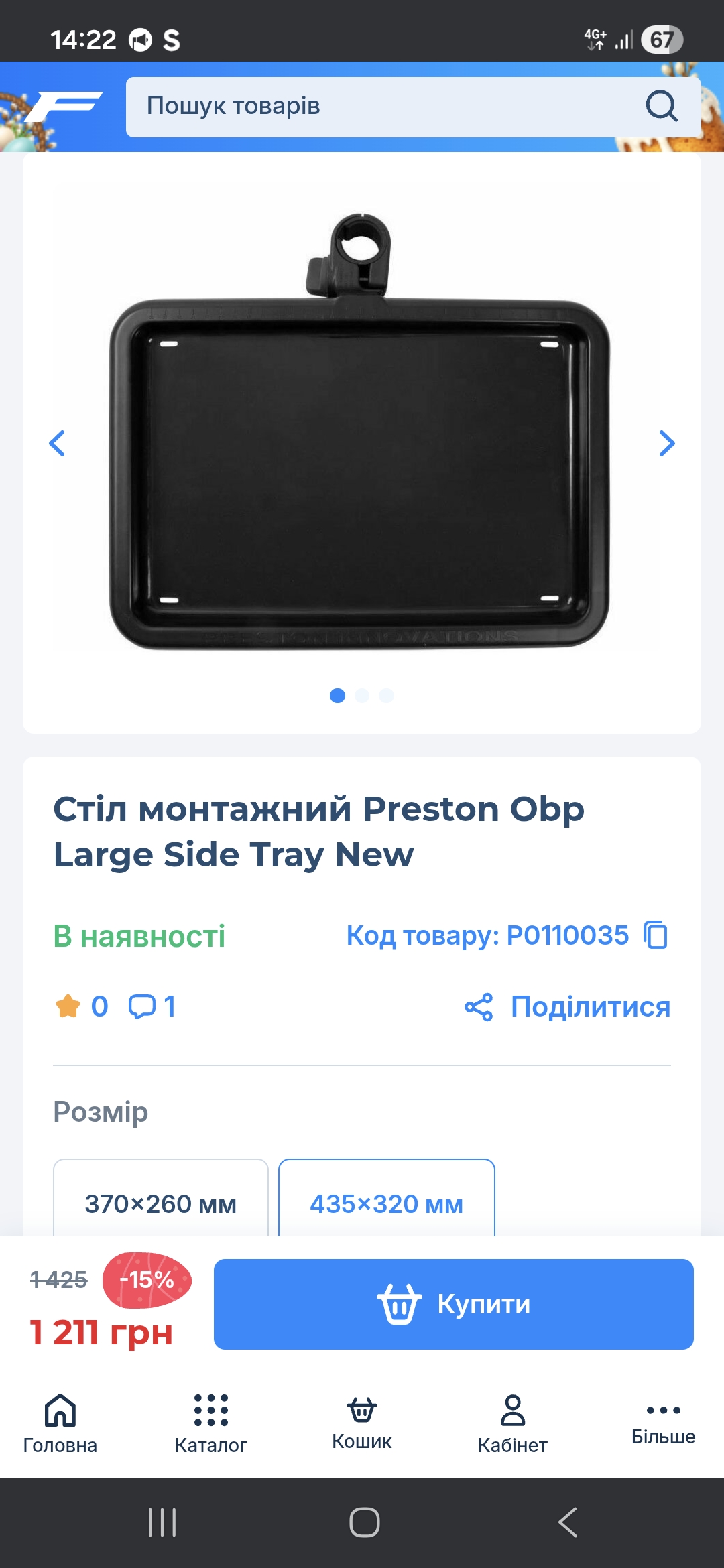 Вы здесь » Все о ловле на английскую донную удочку » Продам » Стіл Preston obp side tray large new.